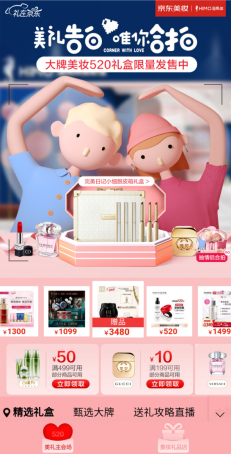 精致的呵护让美丽升级,京东美妆更全面升级多重礼遇。在本次京东时尚居家520表白节上,京东美妆汇集SK-II、兰蔻、完美日记、花西子等一线品牌打造彩妆、护肤及香水限定礼盒,为消费者带来专属表白好礼;同时联合海马体照相馆进行跨界合作,为消费者带来情侣合拍套餐等福利。