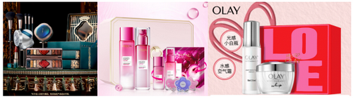 (左:花西子东方妆奁礼盒 中:欧莱雅葡萄籽520限定礼盒 右:OLAY天作之盒礼盒)