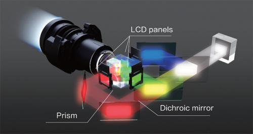 爱普生自主研发的3LCD核心技术,以其出色的色彩表现力、稳定的画质以及广泛的应用场景,在投影领域持续发挥着重要的技术价值。3LCD技术构建了一套精妙的色彩演绎体系:将光源发出的白光通过分色镜分解成红、绿、蓝三色光,然后分别经由独立的LCD面板进行光处理,再经由棱镜将三个独立的基色图像合成为一幅完整的全彩图像。这种实时全彩成像机制,赋予3LCD技术独特的优势——色彩亮度等于白色亮度,这就使画面更加清晰亮丽,色阶过渡细腻自然,且无频闪、无彩虹现象。